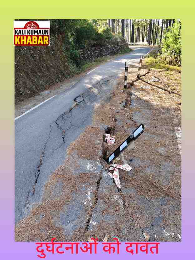 लोहाघाट:दुर्घटनाओं को दावत देती अद्वैत आश्रम मायावती की क्षतिग्रस्त सड़क पर्यटकों को खतरा।