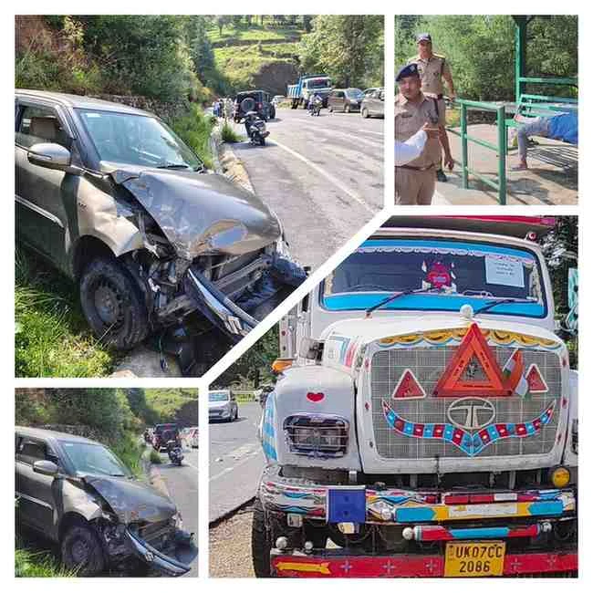 रिपोर्ट:जगदीश जोशी 👹👹 : लोहाघाट:खूना बोरा में डंफ़र और कार में भीषण भिड़ंत एक घायल ।बाल बाल बचा परिवार।