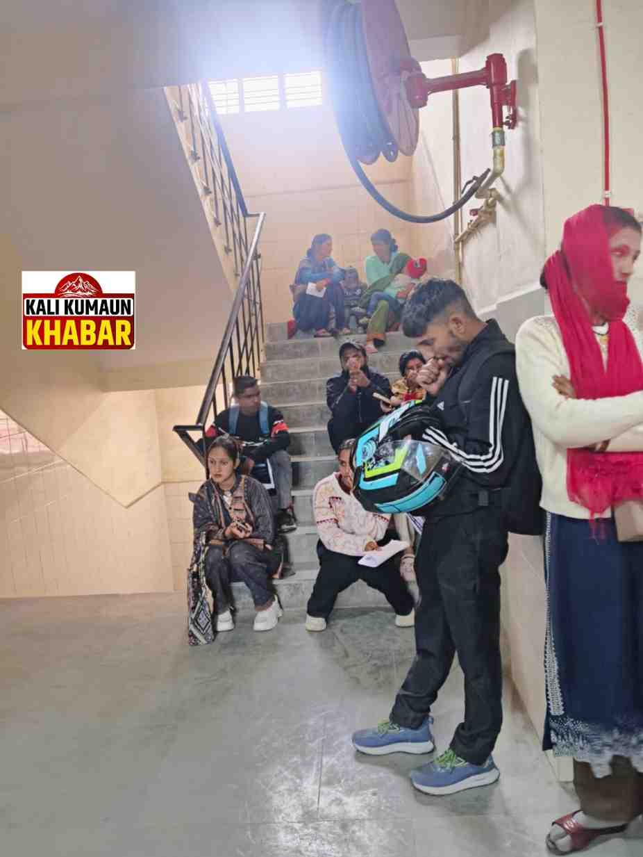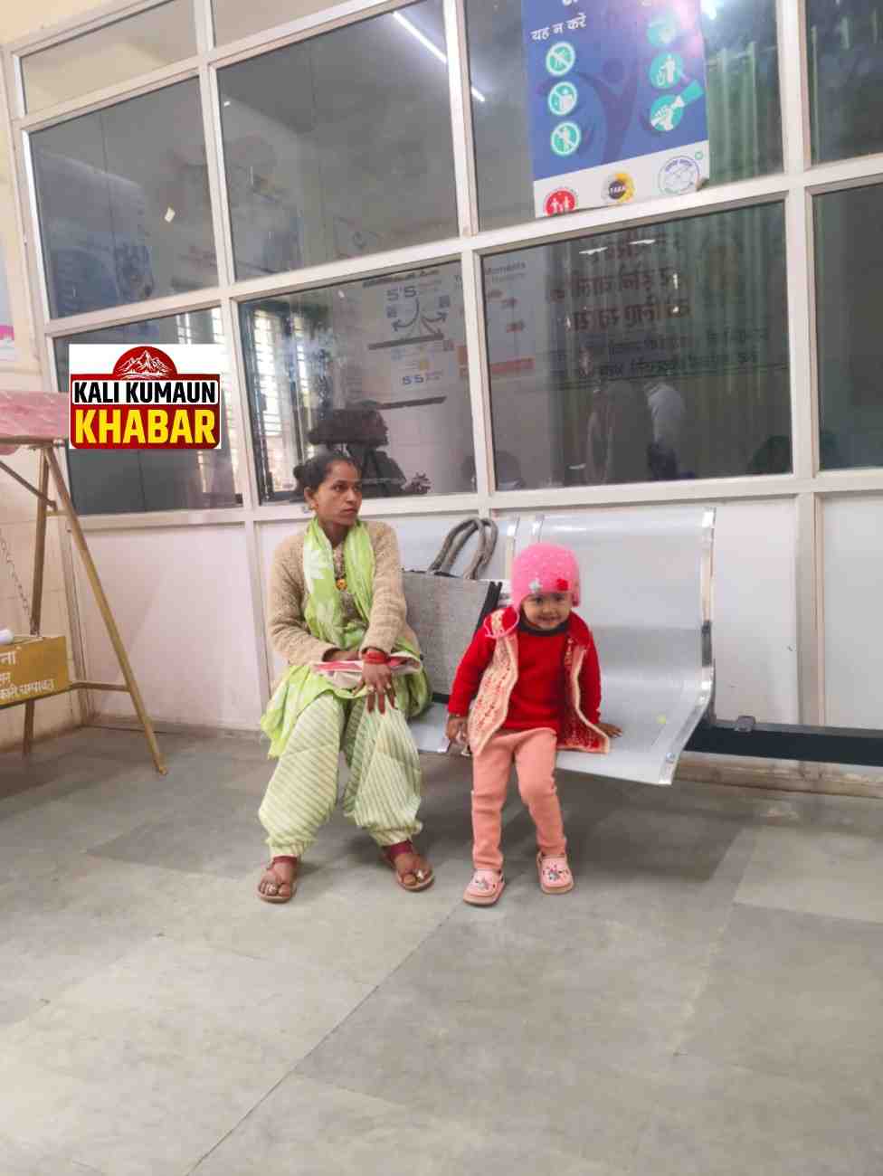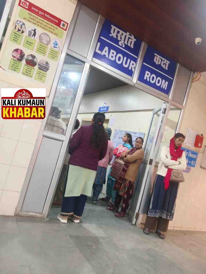 चंपावत जिला अस्पताल में बैंचो की कमी घंटो खड़े रहने व जमीन में बैठने को मजबूर गर्भवती महिलाएं।