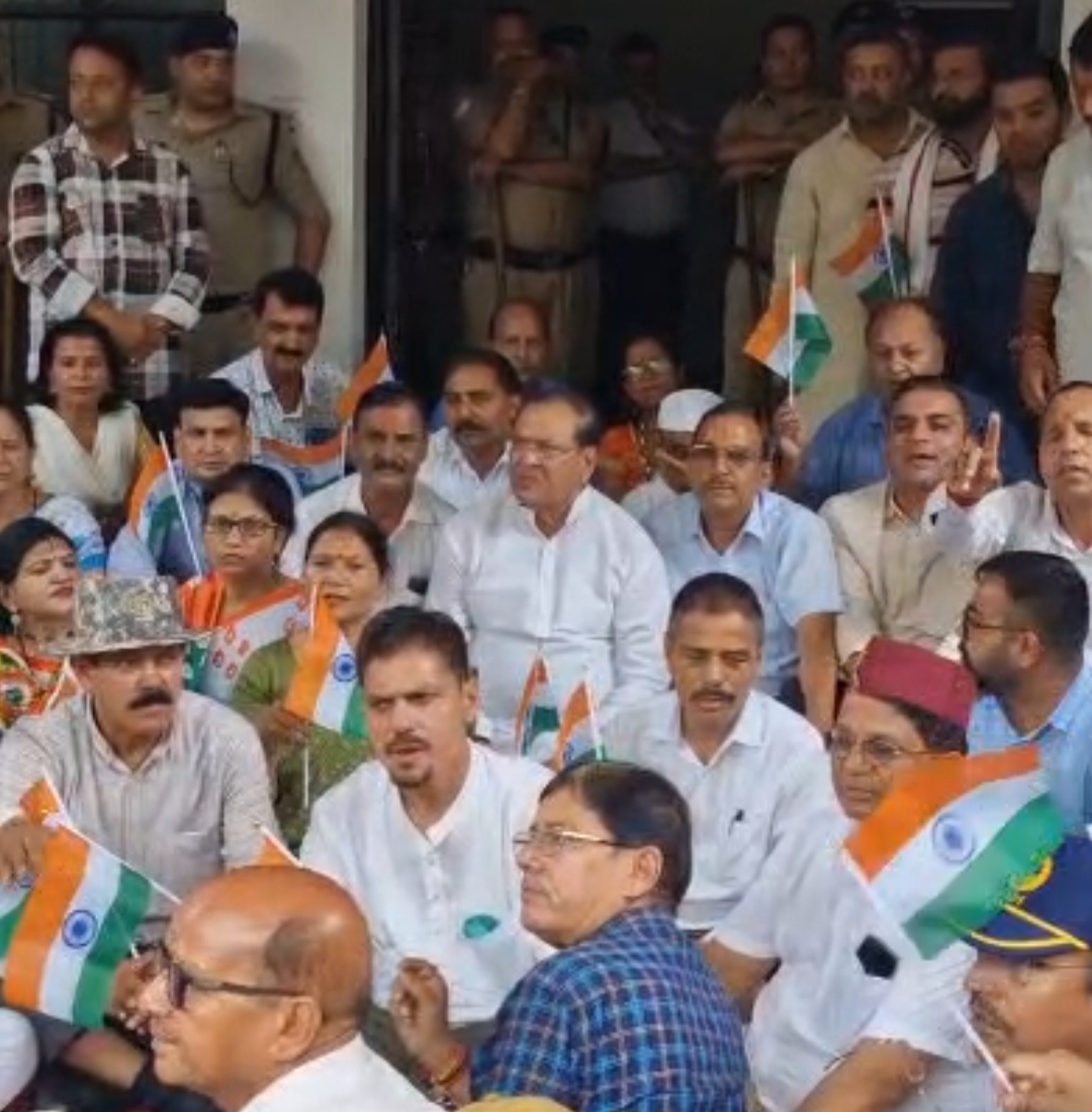 हल्द्वानी: नेता प्रतिपक्ष एसएससी कार्यालय के बाहर बैठे धरने पर, लापता सदस्यों को ढूंढने और एसएसपी हटाने की मांग14 अगस्त गुरुवार को नैनीताल में हुए जिला पंचायत अध्यक्ष चुनाव में बवाल और चुनाव के दौरान गेट के बाहर से कांग्रेस समर्थित पांच जिला पंचायत प्रत्याशियों के अपहरण तथा कांग्रेस नेताओं के साथ-साथ नेता प्रतिपक्ष और विधायकों के साथ हुई अभद्रता के खिलाफ नेता प्रतिपक्ष यशपाल आर्य आज 15 अगस्त शुक्रवार को हल्द्वानी मे एसएसपी कार्यालय के बाहर कांग्रेस कार्यकर्ताओं के साथ धरने पर बैठ गए हैं।नेता प्रतिपक्ष और कांग्रेस के नेताओं द्वारा धरना प्रदर्शन को देखते हुए भारी संख्या में पुलिस बल को तैनात किया गया है। कांग्रेसी पुलिस प्रशासन और जिला प्रशासन के खिलाफ लगातार नारेबाजी कर पुलिस प्रशासन को भाजपा के दबाव में काम करने का आरोप लगा रहे हैं।. इस दौरान कांग्रेस कार्यकर्ताओं ने काफी नाराजगी देखी जा रही है।