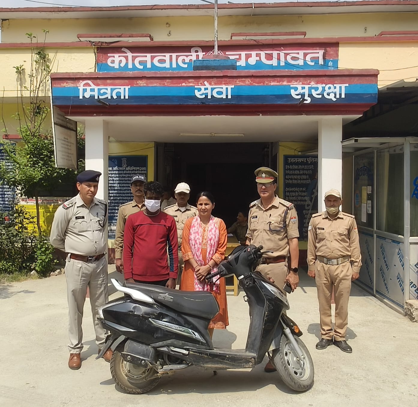 6 लाख की फिरौती मांगने गौड़ी पावर हाउस में तोड़फोड़ करने के आरोपी को पुलिस ने किया गिरफ्तार दिनांक 27.04.2025 को वादी पदम सिह पुत्र करम सिह निवासी इन्द्रानगर कॉलोनी बसन्त विहार देहरादून की तहरीरी सूचना की उसके पावर हाउस गौड़ी रोड चम्पावत मे उसके कर्मचारियो धानू कुमार पुत्र प्रहलाद नि० ग्राम खैरानी थाना निघासन लखीमपुर खीरी उ0प्र० व दीपक पुत्र राम पाल नि० तल्हेडी बुर्जग देवबंद सहारानपुर उ०प्र० द्वारा वादी को मोवाईल पर अपना अपहरण होने व दूसरा व्यक्ति बनकर 6 लाख रूपये की फिरोती मागने तथा वादी के पावर हाउस मे तोडफोड कर मशीनो से कॉपर वायर व वादी की स्कूटी को चोरी कर ले जाने की सूचना पर थाना कोतवाली चम्पावत मे धारा 303 (2) 324 (4) 308 (4) 352/351(2) बी.एन.एस वनाम दीपक आदि पंजीकृत किया गया था। विवचना चौकी प्रभारी बाजार उ0नि० राधिका भण्डारी के सुपुर्द हुयी। एसपी चंपावत अजय गणपति के निर्देश पर दोनों आरोपियों की गिरफ्तारी के लिए के लिए प्रभारी कोतवाल चम्पावत के नेतृत्व मे तत्काल पुलिस टीम गठित कर पुलिस टीम द्वारा सुरागरसी पतारसी व सर्विलान्स के माध्यम से त्वरित कार्यवाही करते हुए अभि० धानू कुमार पुत्र प्रहलाद नि० ग्राम खैरानी थाना निघासन लखीमपुर खीरी उ० प्र० को पलिया पूरनपुर से 29.04.2025 को गिरफ्तार किया गया अभियुक्त के कब्जे से चोरी गयी स्कूटी रजि० न0 UK 07 HA 7873 बरामद किया गया है। आरोपी को को मा० न्यायालय के समक्ष पेश किया जा रहा है। फरार अभियुक्त दीपक की तलाश की जा रही है।पुलिस टीम में उनि0 राधिका भण्डारी प्रभारी चौकी बाजार चम्पावत,हे0 का0 92 मतलूब खॉन ,कानि0 नवीन कन्याल शामिल रहे।
