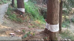 देवदार के घायल पेड़ों पर वन विभाग ने लगाया मलहम अराजक तत्व लापता
