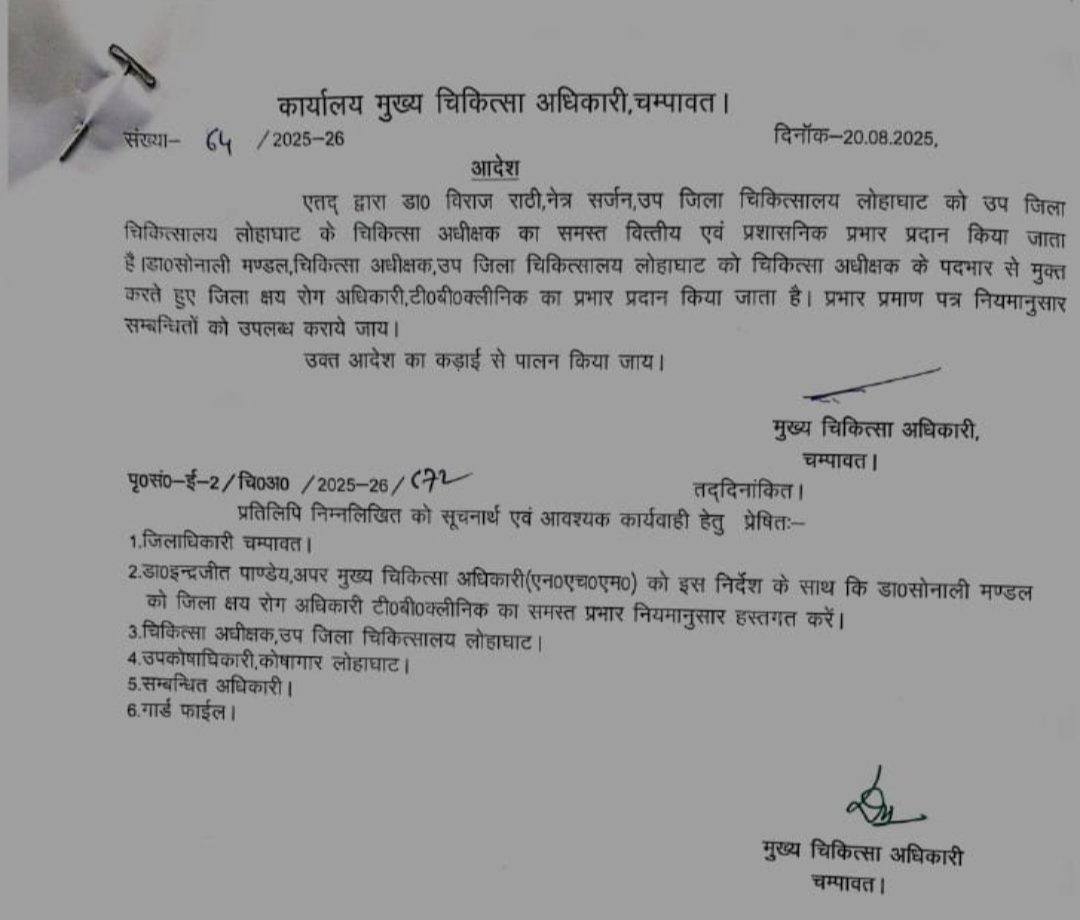 सीएमओ डॉ देवेश चौहान ने आदेश किया जारी।