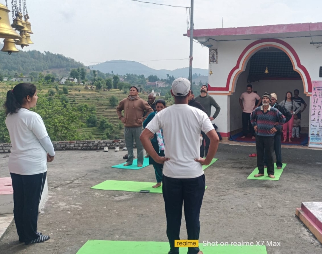 रिपोर्ट:लक्ष्मण बिष्ट 👹👹 : लोहाघाट:एक पृथ्वी एक स्वास्थ्य थीम पर बन्देला ढेक मे विशेष योग शिविर का आयोजन।