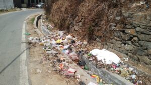 तथा सड़क तक कूड़ा फैल चुका है जिससे क्षेत्र में मक्खी मच्छर बढ़ने के साथ दुर्गंध आ रही है लोगों ने कहा गर्मी तेज है अगर कूड़े में आग लग जाती है तो आग पूरे भवल्लटा के जंगल को अपनी चपेट में ले लेगी वहीं जीआईसी लोहाघाट के पास ठंडी सड़क में भी एक बार फिर से कूड़े के ढेर नजर आ रहे हैं इस स्थान से कूड़ा निस्तारण की जिम्मेदारी ग्राम सभा पाटन पाटनी की है लोगों ने कहा पूरी सड़क में बिखरा हुआ कूड़ा स्वच्छ भारत मिशन की धज्जियां उड़ा रहा है मिशन पर सरकार ने करोड़ों रुपए खर्च कर डाले[/caption] [caption id="attachment_18006" align="alignnone" width="300"]