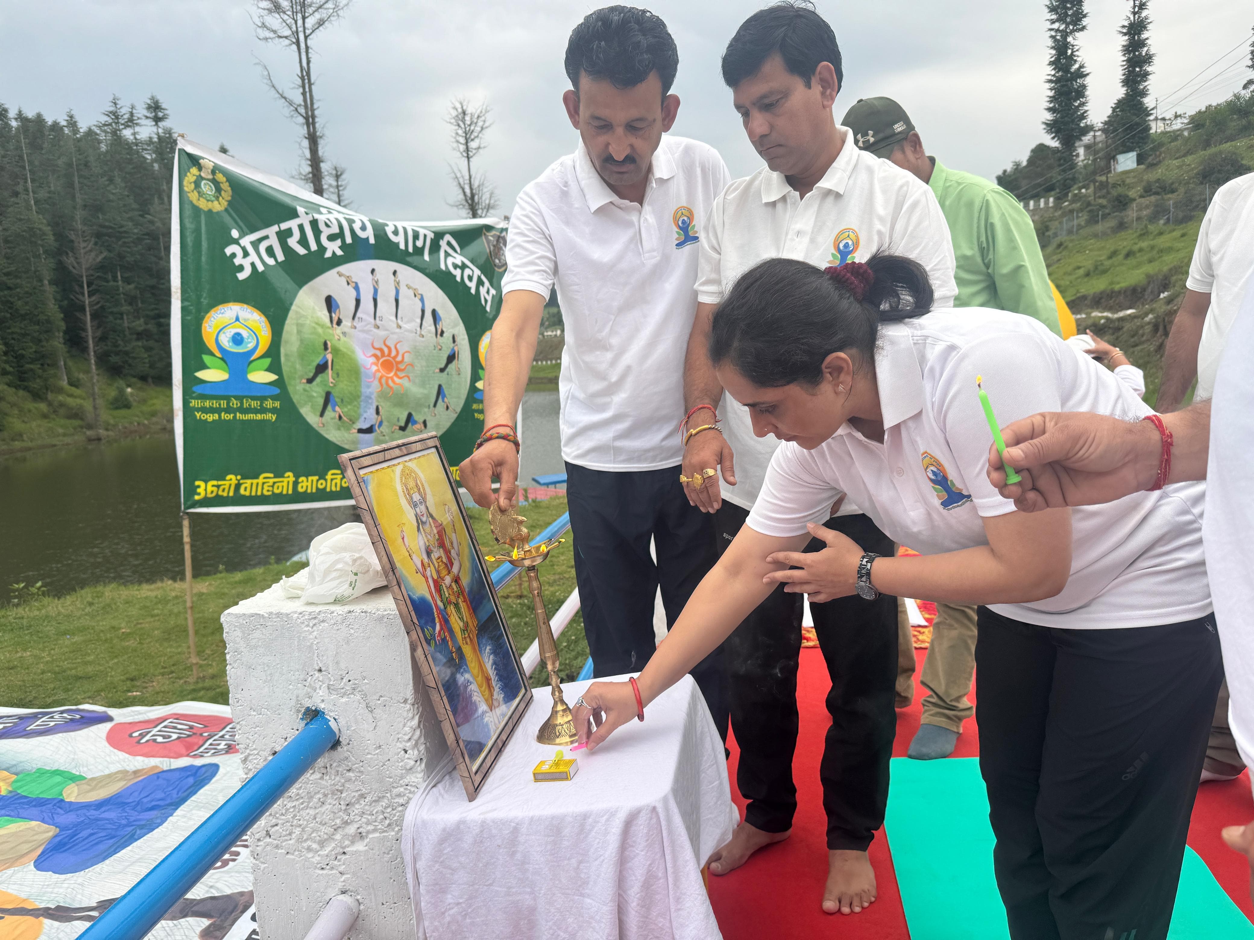 11वें अंतरराष्ट्रीय योग दिवस के अवसर पर कोलीढेक झील (लोहाघाट) में आयुष एवं आयुष शिक्षा विभाग तथा जिला प्रशासन के संयुक्त तत्वावधान में भव्य योग कार्यक्रम का आयोजन किया गया, जिसमें 300 से अधिक प्रतिभागियों ने भाग लिया। कार्यक्रम में मुख्य अतिथि नगर पालिका अध्यक्ष गोविंद वर्मा, विशिष्ट अतिथि व्यापार मंडल अध्यक्ष श्री मनीष जुकरिया, ITBP असिस्टेंट कमांडेंट श्री गौरव कुमार सहित प्रशासन एवं विभागों के कई अधिकारी उपस्थित रहे। कार्यक्रम का संचालन नोडल अधिकारी डॉ. उमेश भारती द्वारा दीप प्रज्वलन व स्वागत भाषण के साथ हुआ। योग अभ्यास का नेतृत्व योग प्रशिक्षकों श्रीमती लीला जोशी, श्री शंकर सिंह अधिकारी और श्रीमती कविता बोहरा ने किया। इस अवसर पर ITBP जवानों सहित विभिन्न विभागों के अधिकारी-कर्मचारी, आम नागरिकों और स्वयंसेवकों ने कॉमन योगा प्रोटोकॉल का अभ्यास किया।