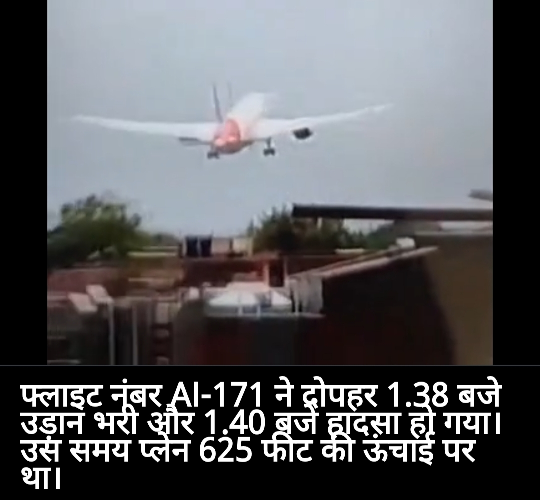 यह घटना एयरपोर्ट से करीब 15 किलोमीटर दूर हुई है। हादसे की जानकारी मिलते ही मौके पर फायर ब्रिगेड की कई गाड़ियां पहुंची है और आग बुझाने की कोशिशें जारी है।बताया जा रहा है कि एयर इंडिया के पैसेंजर विमान बोइंग ड्रीमलाइन 787 क्रैश हुआ है। अहमदाबाद के सरदार वल्लभभाई पटेल इंटरनेशनल एयरपोर्ट से टेकऑफ करते समय किसी इमारत की दीवार के टकराने के बाद प्लेन क्रैश हुआ है। विमान का एक विंग टूटकर गिर गया। तमाम बड़े अधिकारी मौके पर पहुंचे हैं और रेस्क्यू जारी है। जानकारी के मुताबिक पूर्व मुख्यमंत्री विजय रुपाणी अपनी बेटी से मिलने लंदन जा रहे थे उनका टिकट न012 था।