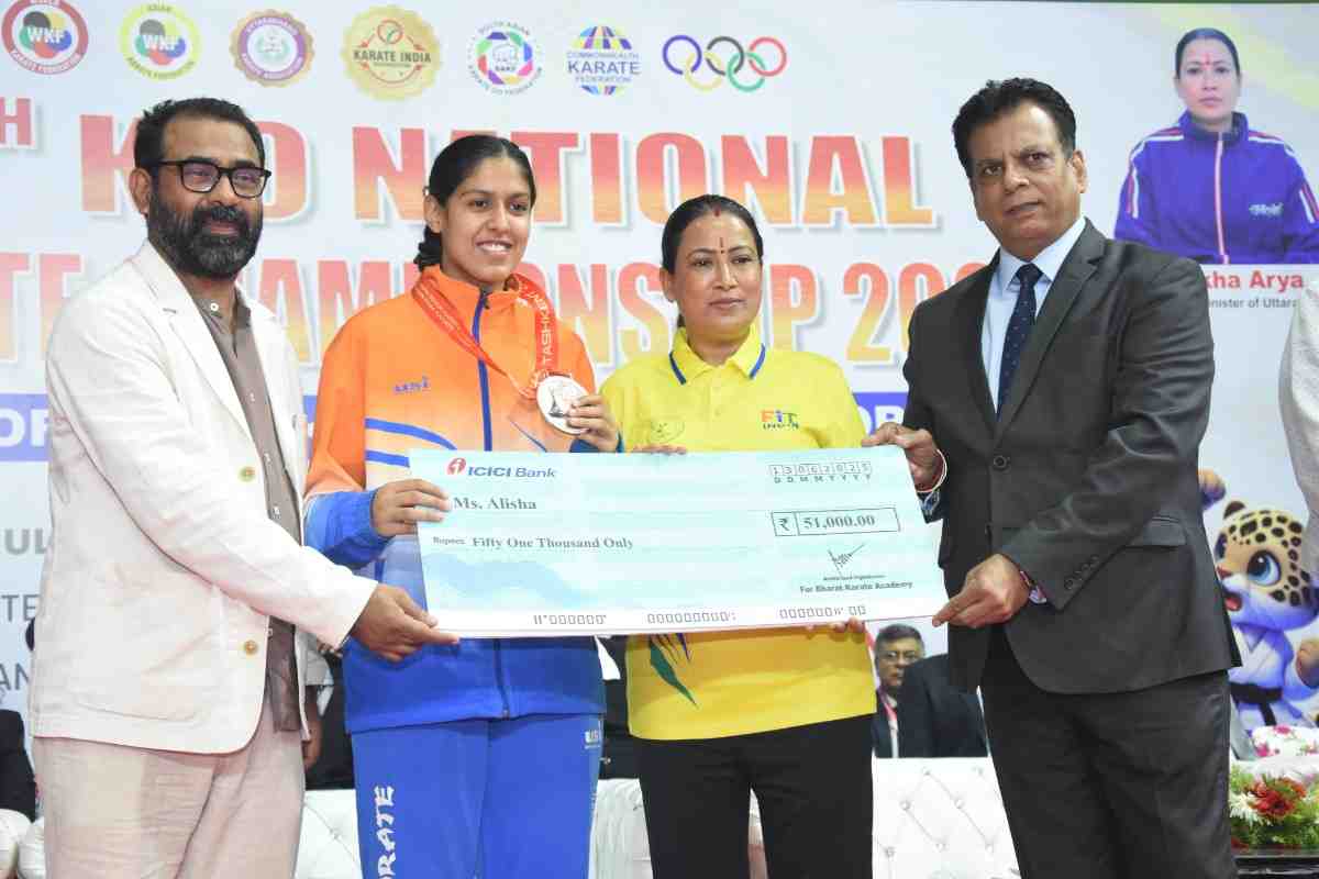 उन्होंने कहा कि अब उत्तराखंड अंतरराष्ट्रीय स्तर की प्रतियोगिताओं का भी मेजबान बन रहा है जो प्रदेश के हर नागरिक के लिए गौरव का विषय है। खेल मंत्री ने कहा कि अब खिलाड़ी को अपने करियर की चिंता करने की आवश्यकता नहीं है, वह जैसे ही प्रदेश के लिए पदक जीत कर लाएंगे, सरकारी नौकरी उनकी प्रतीक्षा करती मिलेगी। उन्होंने कहा कि ओलंपिक, एशियाड और कॉमनवेल्थ गेम में पदक जीतने पर नौकरी में रिजर्वेशन ज्यादातर राज्यों में दिया जाता है, लेकिन उत्तराखंड में अब राज्य स्तरीय प्रतियोगिताओं के पदक विजेताओं को भी आरक्षण के दायरे में लाया गया है। खेल मंत्री ने खिलाड़ियों को प्रोत्साहित करते हुए कहा कि किसी भी दूसरे प्रोफेशन में उनका नाम और यश एक सीमित दायरे में ही रहता है लेकिन अगर वें एक खिलाड़ी के तौर पर नाम कमाते हैं तो उनकी कीर्ति किसी भी सीमा की मोहताज नहीं रहती। खिलाड़ी पूरे विश्व के युवाओं का आदर्श बन जाता है। इस अवसर पर खेल मंत्री रेखा आर्या ने 23 से 25 मई तक उज्बेकिस्तान में आयोजित एशियाई कराटे चैंपियनशिप में भारत के लिए पदक जीतने वाले तरुण शर्मा, अलीशा और भुवनेश्वरी जाधव को भी सम्मानित किया।
