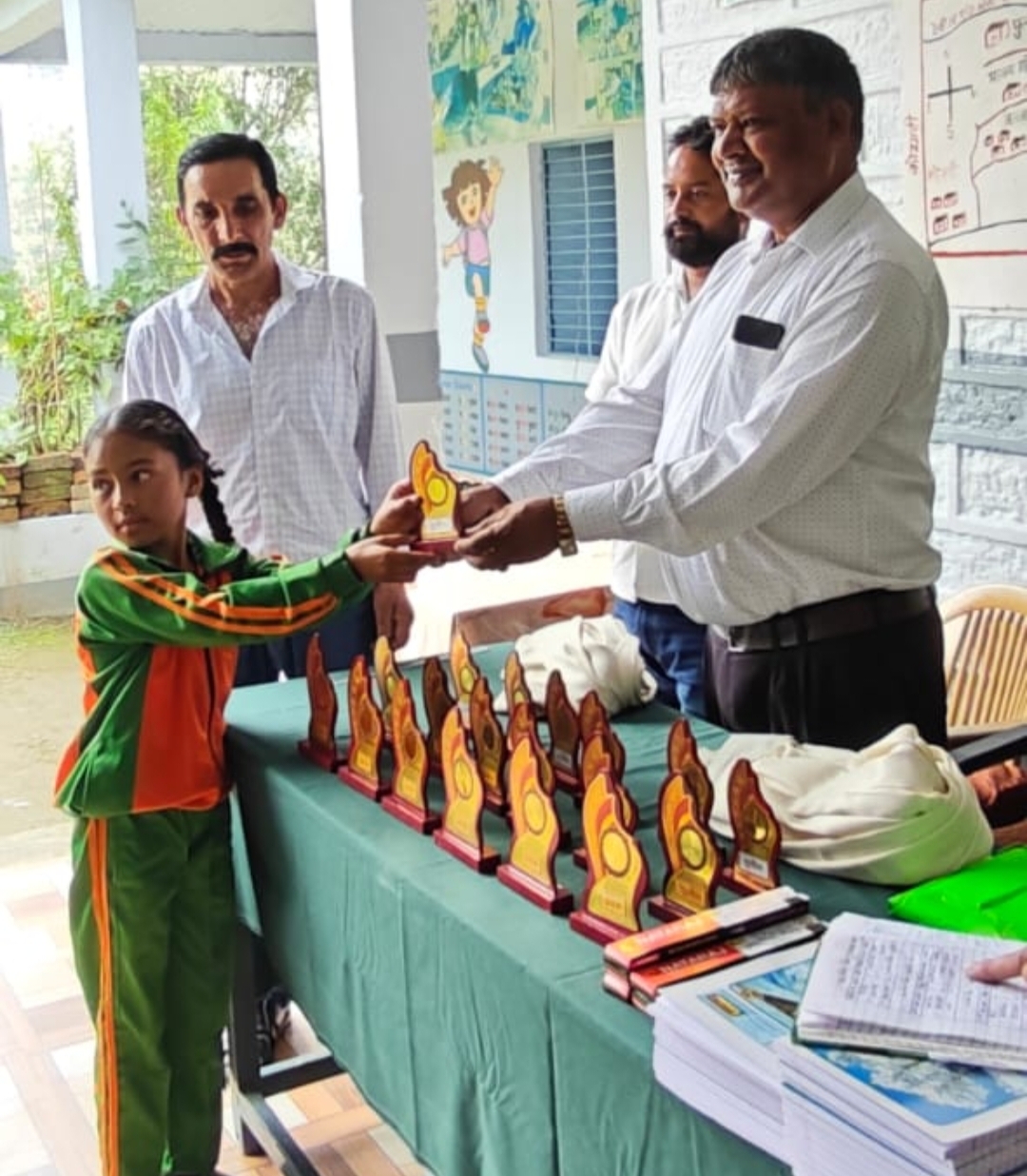 प्रतियोगिता में प्रतिभागी बच्चों को पुरस्कार देकर सम्मानित किया गया। कार्यक्रम के दौरान शिक्षा के क्षेत्र में उत्कृष्ट कार्य करने वाले अध्यापिका श्रीमती निर्मला राय ,श्रीमती सरस्वती अधिकारी, श्रीमती निर्मला टम्टा ,श्रीमती भारती पांडे व अध्यापक चंचल सिंह ,दीप जोशी ,ओमप्रकाश, मुकेश मुरारी ,जीवन मेहता को प्रशस्ति पत्र देकर सम्मानित किया गया।.