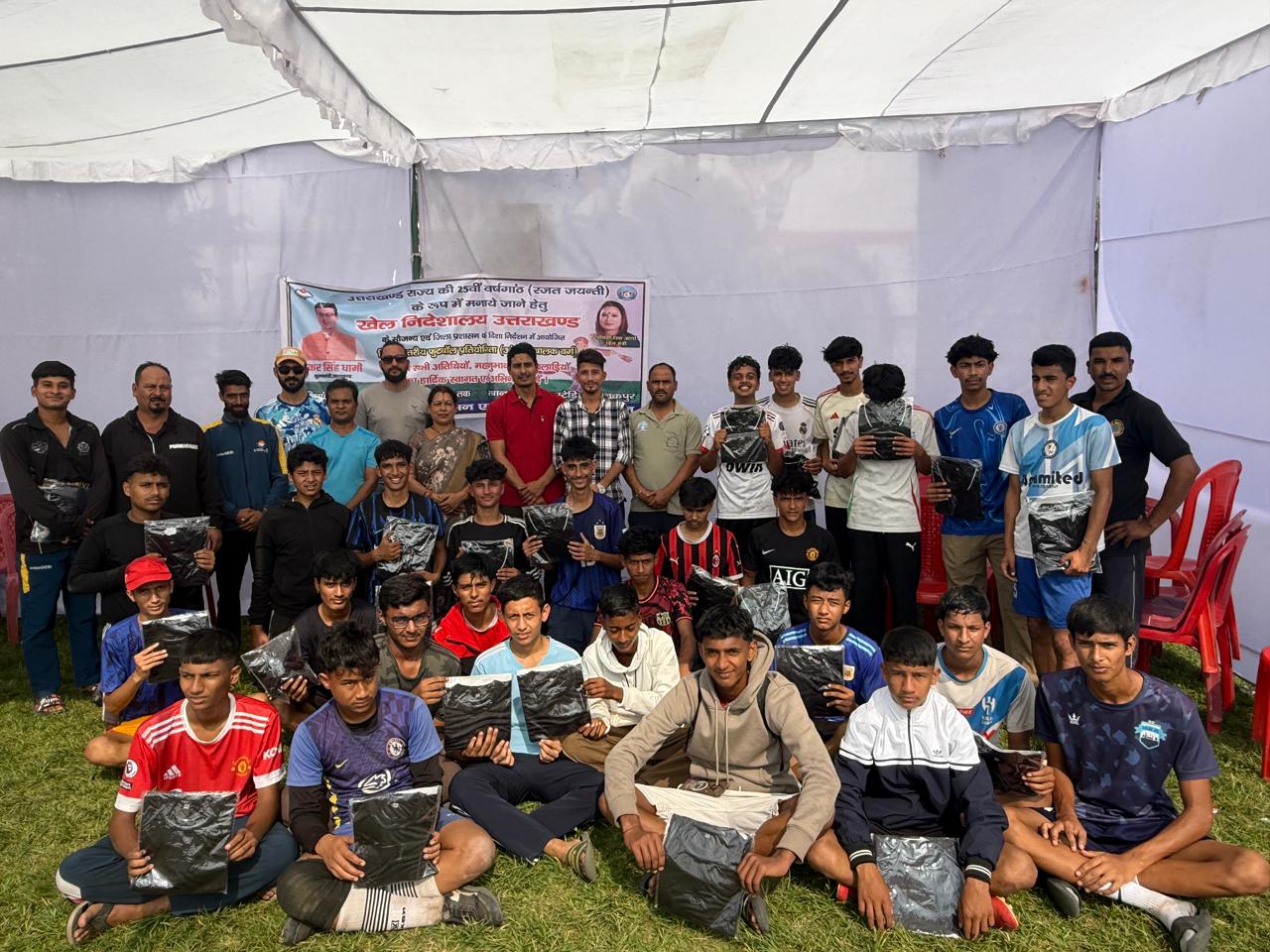 जिलाधिकारी मनीष कुमार के निर्देशानुसार जिला खेल कार्यालय चंपावत के तत्वावधान में, उत्तराखण्ड राज्य स्थापना की रजत जयंती वर्षगांठ के उपलक्ष्य में आज स्पोर्ट्स स्टेडियम टनकपुर में जिला स्तरीय फुटबॉल (अंडर-17, बालक वर्ग) प्रतियोगिता का फाइनल मैच आयोजित किया गया।प्रतियोगिता के समापन एवं पुरस्कार वितरण कार्यक्रम की मुख्य अतिथि जिला पंचायत उपाध्यक्ष श्रीमती पुष्पा विश्वकर्मा रहीं, जिन्होंने विजेता एवं उपविजेता टीमों को पुरस्कृत किया तथा सभी खिलाड़ियों को भविष्य में उत्कृष्ट प्रदर्शन हेतु प्रोत्साहित किया।फुटबॉल प्रशिक्षक गौरव खोलिया ने बताया कि फाइनल मुकाबला लोहाघाट और बनबसा की टीमों के मध्य खेला गया, जिसमें रोमांचक मुकाबले के बाद लोहाघाट की टीम ने 4–3 से विजय प्राप्त की।निर्णायक मंडल में रोहन बिष्ट एवं सौरभ बोहरा शामिल रहे। प्रतियोगिता के सफल आयोजन में स्टेडियम प्रभारी मुकेश शर्मा, स्पोर्ट्स हॉस्टल बॉक्सिंग प्रशिक्षक ललित मोहन कुंवर, फुटबॉल प्रशिक्षक पवनेश पाटनी, रन बहादुर मल, लोहाघाट टीम कोच नितिन ढेक, बॉक्सिंग प्रशिक्षक सूरज पांडे, वॉलीबॉल प्रशिक्षक आशा पांडे, क्रिकेट प्रशिक्षक मनोज टकवाल, हीरा, दीपक एवं राकेश का विशेष सहयोग रहा।