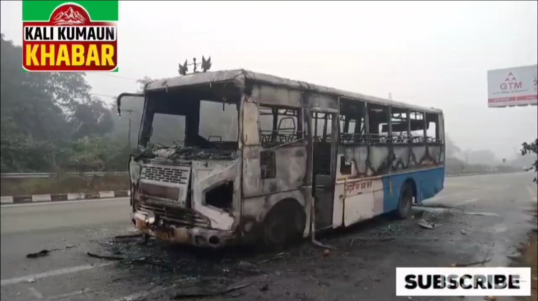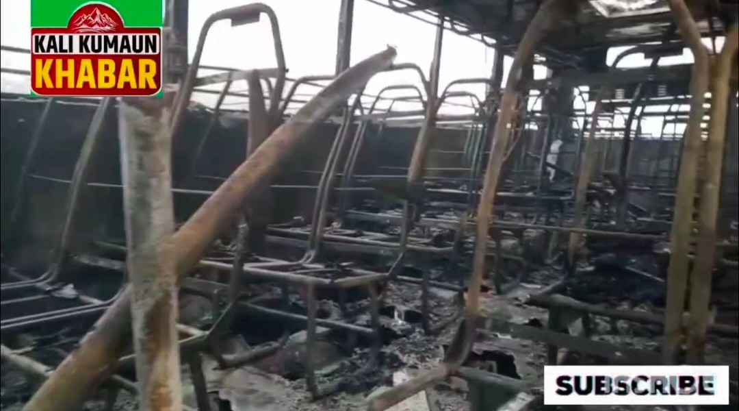 लोहाघाट से देहरादून जा रही रोडवेज बस में लगी भीषण आग बाल बाल बचे यात्री व रोडवेज कर्मी