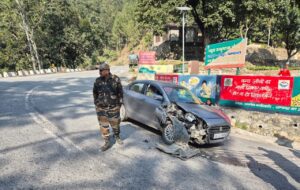 फौज के ट्रक ने कार को मारी टक्कर बाल बाल बचे कार सवार दो बच्चों सहित 6 लोग घायल