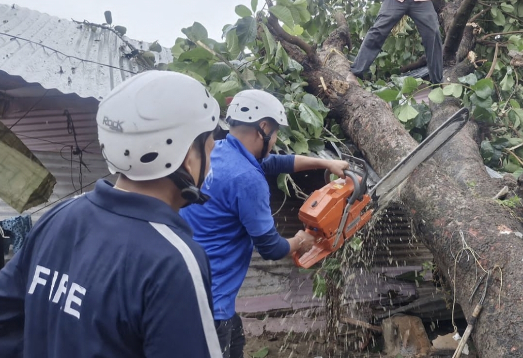 फायर स्टेशन टनकपुर का त्वरित रेस्क्यू ऑपरेशनआज दिनांक _07 अक्टूबर चंपावत जिले के कैनाल रोड बनबसा में रहने वाले व्यक्तियों के छप्परों पर एक विशालकाय पेड़ गिर गया। पेड़ गिरने से हरकंप मच गया। पेड़ गिरने से कुछ बच्चोंके दबे होने की सूचना पर फायर स्टेशन टनकपुर की रेस्क्यू टीम घटनास्थल पर पहुची घटनास्थल पर राम अवतार कश्यप के छप्पर का टिन और रसोईघर क्षतिग्रस्त, रामपाल का छप्पर का टिन क्षतिग्रस्त, अरविंद कश्यप का छप्पर का टिन और लकड़ी का छप्पर क्षतिग्रस्त हुआ तथा दो बच्चे घर में फंसे हुए है।रेस्क्यू टीम ने तत्परता से वुडन कटर की सहायता से पेड़ को छोटे-छोटे टुकड़ों में काटते हुए बच्चों को सुरक्षित बाहर निकाल कर उनकी जान बचाई। साथ ही, घर और अन्य सामानों को अधिक नुकसान से बचा लिया गया।टनकपुर फायर स्टेशन की इस त्वरित और कुशल कार्रवाई से एक बड़ा हादसा टल गया। क्षेत्रवासियों ने उनकी इस तत्परता और साहसिक प्रयास की सराहना की।