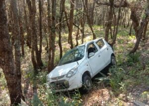 कार दुर्घटना में बाल बाल बचे बाराकोट उद्यान प्रभारी बाइक सवार को बचाने के चक्कर में खाई में गिरी कार