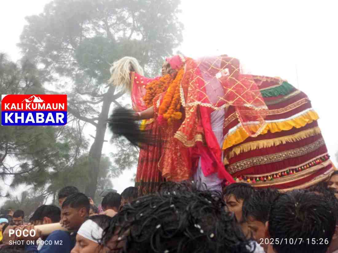 रिपोर्ट: जगदीश जोशी : बाराकोट:मूसलाधार बारिश के बीच ढोल नगाड़ों के साथ निकले मां भगवती व महाकाली के डोले लड़ीधुरा महोत्सव का समापन।