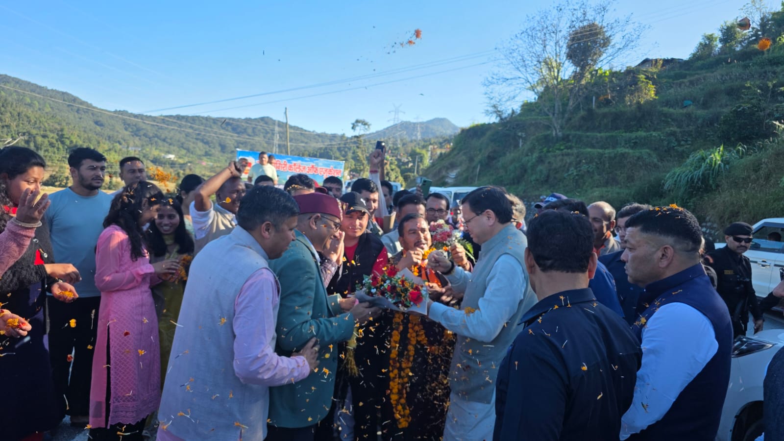 रिपोर्ट: जगदीश जोशी : चंपावत:सीएम धामी के मां पूर्णागिरी बीएड व नर्सिंग कॉलेज पहुंचने पर फूल मालाओं के साथ हुआ भव्य स्वागत