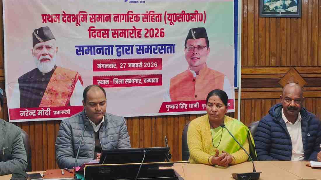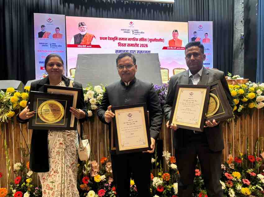 प्रदेश में समान नागरिक संहिता (UCC) के प्रभावी क्रियान्वयन की दिशा में उल्लेखनीय उपलब्धि हासिल करते हुए जनपद चम्पावत को राज्य में सर्वश्रेष्ठ प्रदर्शन करने पर सम्मानित किया गया। यह सम्मान मंगलवार को देहरादून स्थित हिमालयन कल्चरल सेंटर, गढ़ी कैंट में आयोजित प्रथम “समान नागरिक संहिता दिवस” समारोह के दौरान प्रदान किया गया।इस अवसर पर माननीय मुख्यमंत्री पुष्कर सिंह धामी ने कार्यक्रम की अध्यक्षता करते हुए समान नागरिक संहिता को सामाजिक समरसता, समान अधिकार और सशक्त प्रशासनिक व्यवस्था की दिशा में ऐतिहासिक कदम बताया। उन्होंने संहिता का प्रारूप तैयार करने वाली समिति के सदस्यों, इसके सफल क्रियान्वयन में जुटे प्रशासनिक अधिकारियों तथा पंजीकरण कार्य में महत्वपूर्ण भूमिका निभाने वाले वीएलसी को भी सम्मानित किया।इसी क्रम में राज्य में उत्कृष्ट प्रदर्शन के लिए जनपद चम्पावत को विशेष रूप से सम्मानित किया गया। जनपद ने जिलाधिकारी श्री मनीष कुमार के कुशल नेतृत्व में समान नागरिक संहिता के अंतर्गत ग्रामीण क्षेत्रों में शत-प्रतिशत पंजीकरण सुनिश्चित कर एक मिसाल कायम की है। वर्तमान तक जनपद में 24,700 से अधिक नागरिकों ने समान नागरिक संहिता के अंतर्गत पंजीकरण करवा लिया है, जो जनजागरूकता और प्रशासनिक समन्वय का उत्कृष्ट उदाहरण है।जिलाधिकारी मनीष कुमार के प्रतिनिधि के रूप में मुख्य विकास अधिकारी डॉ. जी.एस. खाती ने यह सम्मान मुख्यमंत्री पुष्कर सिंह धामी से ग्रहण किया।