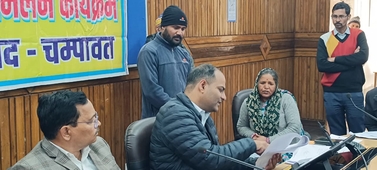 कोलीढेक, लोहाघाट की पूजा देवी द्वारा प्रधानमंत्री वात्सल्य योजना पेंशन न मिलने की शिकायत पर जिलाधिकारी ने उन्हें अटल आवास योजना तथा मुख्यमंत्री राहत कोष से लाभ प्रदान करने के निर्देश दिए। ग्राम वांस निवासी जोत राम बहादुर द्वारा सड़क दुर्घटना में चोट लगने के बाद बीमा धनराशि न मिलने की शिकायत पर परिवहन विभाग को तत्काल कार्यवाही करने के निर्देश दिए गए। नागनाथ वार्ड चंपावत के योगेश जोशी तथा अन्य परिवारों की ओर से वार्ड नंबर 7 में सार्वजनिक बरसाती नाले के निर्माण की मांग पर अधिशासी अधिकारी को शीघ्र निर्माण कार्य प्रारंभ करने के निर्देश दिए गए।तल्ली मादली निवासी श्री जगदीश पांडे की अनाधिकृत कब्जे संबंधी शिकायत पर जिलाधिकारी ने उपजिलाधिकारी सदर को जांच करने एवं संबंधित क्षेत्र में निर्माण कार्य रोकने के निर्देश दिए।सुंगरखाल, लोहाघाट निवासी श्रीमती कविता राय की आर्थिक सहायता व बच्चों की शिक्षा की मांग पर जिलाधिकारी ने अधिशासी अधिकारी लोहाघाट को आवश्यक कार्यवाही करने तथा बच्चों को आरटीई के तहत शिक्षा उपलब्ध कराने के निर्देश दिए। लीलाधर की शिकायत पर लघु सिंचाई विभाग को गुल निर्माण में हुए वास्तविक भुगतान को तत्काल करने के निर्देश दिए गए।