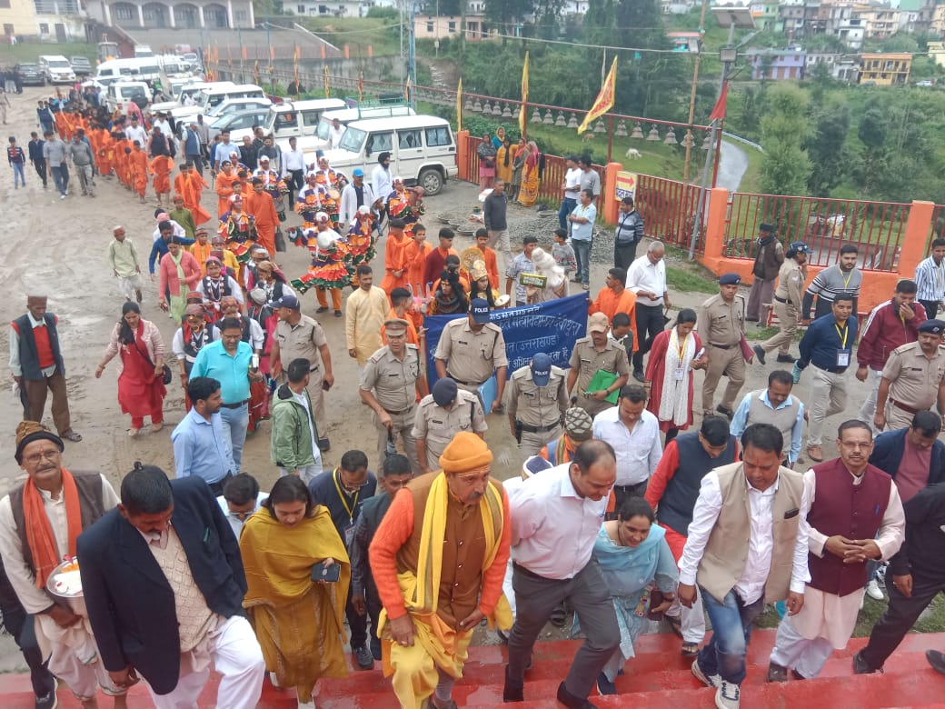 इससे पूर्व जिलाधिकारी का आयोजन समिति द्वारा ढोल नगाड़ों, छलिया नृत्य व बच्चों की कलश यात्रा के साथ देवीधुरा मुख्य बाजार से मंडल तक लाया गया।अपनी विशिष्ट कार्य शैली एवं संस्कृति से विशेष पहचान बना चुके जिलाधिकारी ने मेले में अपने इष्ट मित्रों के साथ बड़ी संख्या में पहुंचने की अपील की।आयोजन कीर्ति शास्त्री, विक्रम कथायत के संचालन में हुए इस समारोह में चार खाम, सात थोक की ओर से ज़िलाधिकारी का भव्य स्वागत किया गया।