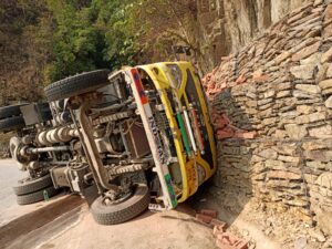 भारतोली में डंपर दुर्घटनाग्रस्त चालक घायल