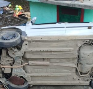 कठैल में पलटा वाहन बाल -बाल बचे चार लोग।