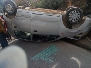 लोहाघाट पिथौरागढ़ राष्ट्रीयराजमार्ग में शनिवार दोपहर 3:00 बजे के आसपास लोहाघाट से पिथौरागढ़ की ओर जा रही वेगनआर कार अचानक लकी बेकरी (एमजे )होटल के पास अनियंत्रित होकर सड़क में पलट गई जिसमें कार में सवार पिता पुत्री घायल हो गया दुर्घटना होते देखा आसपास के लोग तथा भवन निर्माण में लगे मजदूर तुरंत मदद को आगे आए और कार का शीशा तोड़ किसी तरह दोनों घायलों को कार से बाहर निकाला दुर्घटना में बाप बेटी मामले रूप से चोटिल हुए दुर्घटना के चलते एनएच आधा घंटा बंद रहा लोगों के द्वारा कार को किसी तरह खड़ा कर सड़क किनारे किया गया जिसके बाद यातायात सुचारू हुआ लोगों ने कहा एमजे होटल से लेकर मरोड़ाखान तक सड़क बदहाल हो चुकी है जिस कारण दुर्घटनाओं का खतरा बढ़ चुका है घायलों की मदद करने में खुशी, भुवन देव ,अमरदीप , डॉग केंद्र संचालक तथा अन्य लोग शामिल रहे