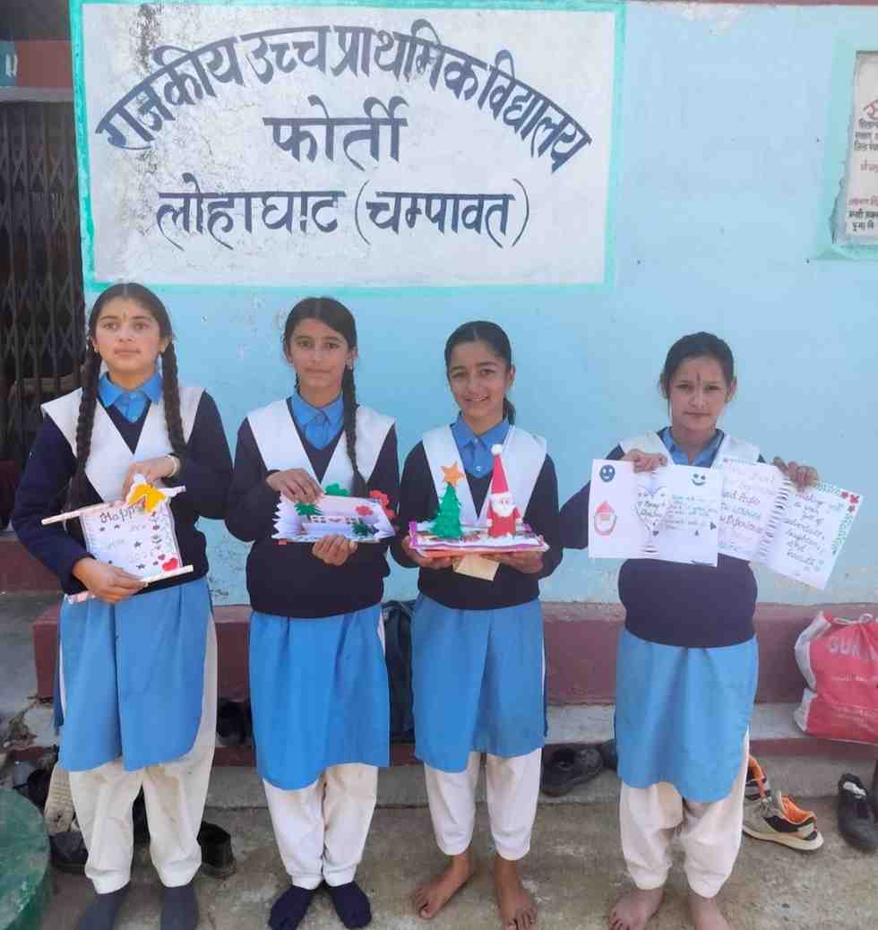 शीतावकाश पूर्व अंतिम कार्य दिवस पर आज क्रिसमस और नव वर्ष हेतु ग्रीटिंग निर्माण प्रतियोगिता आयोजित की गयी। ग्रीटिंग में हिमानी उपाध्याय प्रथम, पाश्वी सुतेड़ी द्वितीय, निशा बगौली तृतीय तथा चित्र भट्ट को सांत्वना पुरस्कार दिया गया आयोजन में इंद्रा आर्या , ओमप्रकाश बगौली, रश्मि उपाध्याय ने निर्णायक की भूमिका में सहयोग किया ।