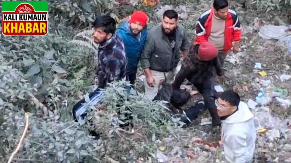 पंचेश्वर टैक्सी स्टैंड में गधेरे में गिरा युवक पुलिस व स्थानीय युवाओं ने बचाई जान।