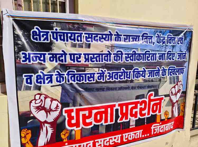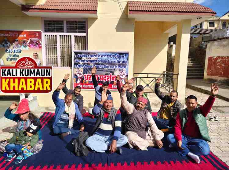 चंपावत जिले के लोहाघाट ब्लॉक के 16 क्षेत्र पंचायत सदस्यो ने चतुर्थ राज्य वित्त, 15 वा राज्य वित्त, केंद्रीय वित्त के वितरण तथा स्वीकृत योजनाओं की टेंडर प्रक्रियाओं में अनियमितता के आरोप लगाते हुए आज 31 दिसंबर से खंड विकास अधिकारी कार्यालय लोहाघाट में क्षेत्र पंचायत सदस्य प्रकाश सिंह धामी के नेतृत्व में अनिश्चित कालीन धरना प्रदर्शन शुरू कर दिया है कहा जब तक उनकी मांगे पूरी नहीं होगी धरना लगातार चलता रहेगा। क्षेत्र पंचायत सदस्यो ने कहा ग्राम व क्षेत्र के विकास की हम पर जिम्मेदारी।इसलिए हमारे द्वारा पूर्व में क्षेत्र पंचायत बैठक एवं व्यक्तिगत रूप से ब्लॉक प्रमुख व खंड विकास अधिकारी को क्षेत्र की विकास योजना हेतु प्रस्ताव दिए गए है।