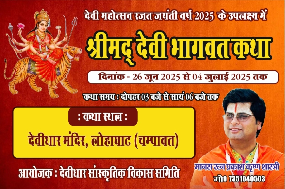 रिपोर्ट: लक्ष्मण बिष्ट 👹👹 : लोहाघाट:देवीधार देवी महोत्सव रजत जयंती अवसर पर देवी भागवत महापुराण कथा का 26 जून से आयोजन।