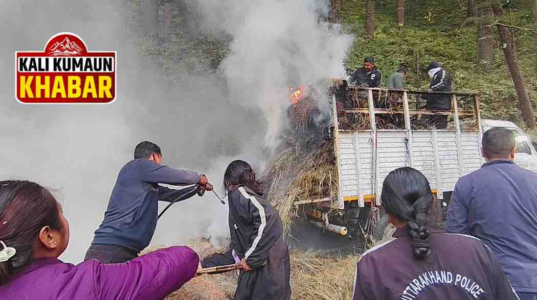 लोहाघाट में आज रविवार दोपहर 2:30 बजे के लगभग कालाकोट से लोहाघाट के राय नगर चोड़ी की ओर सूखी घास ले जा रहे ट्रक में लोहाघाट डिग्री कॉलेज सड़क में जल निगम कार्यालय के पास बिजली के पोल से निकली चिंगारी से आग लग गई। वाहन चालक अर्जुन सिंह ने समझदारी का परिचय देते हुए अपने वाहन को आबादी क्षेत्र से दूर बाड़ीगाड़ पुल के पास खड़ा किया और 112 को सूचना दी। सूचना पर लोहाघाट से फायर ब्रिगेड की टीम तत्काल मौके पर पहुंची और फायर कर्मियों ने स्थानीय लोगों की मदद से ट्रक में लगी आग पर काबू पाया और एक बड़ी दुर्घटना को होने से बचा लिया