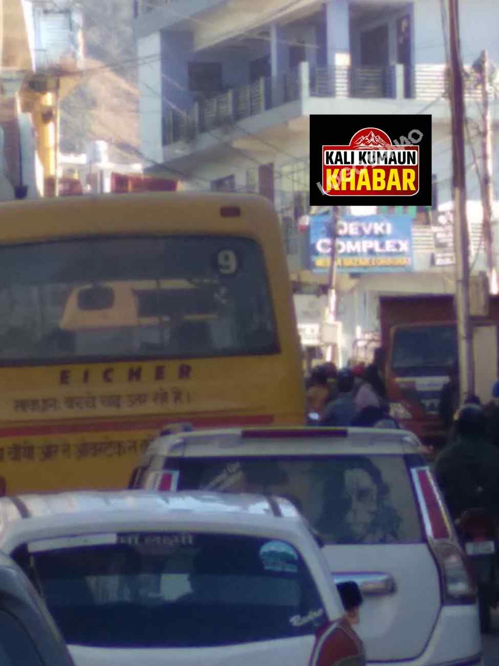 रिपोर्ट:लक्ष्मण बिष्ट : लोहाघाट:स्कूल टाइम में पालिका के कूड़ा वाहन ने लगाया भीषण जाम। स्कूली बच्चे रहे परेशान।