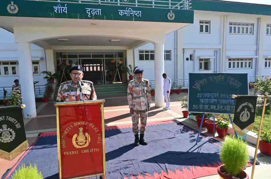 लोहाघाट के छमनिया में स्थित भारत तिब्बत सीमा पुलिस बल की 36वीं वाहनी के द्वारा आज मंगलवार 21 अक्टूबर को कमांडेंट संजय कुमार के नेतृत्व में पुलिस स्मृति दिवस के अवसर पर अमर शहीदों को याद करते हुए उन्हें श्रद्धांजलि दी गई ।इस अवसर पर आईटीबीपी के सभी पदाधिकारियो व जवानों ने 2 मिनट का मौन रख अमर शहीदों को श्रद्धांजलि अर्पित की गई।आईटीबीपी के कमांडेंट संजय कुमार द्वारा पुलिस स्मृति दिवस के बारे में सभी आईटीबीपी के पदाधिकारियो व जवानों को जानकारी दी। उन्होंने 01 सितंबर 2024 से 31 अगस्त 2025 तक देश की सुरक्षा में अपना सर्वोच्च बलिदान देकर अमर शहीद हुए 191 शहीदों के नामो की जानकारी देते हुए उनके बारे में बताया गया।इस अवसर पर आइटीबीपी छत्तीस वी वाहिनी मुख्यालय में आयोजित कार्यक्रम में द्वितीय कमान अधिकारी सुबे सिंह , उप सेनानी मुकेश चंद ,सहायक सेनानी गौरव कुमार ,डॉक्टर सुरभि ,डॉक्टर फिल्म गामटे सहित वाहिनी के समस्त जवान मौजूदरहे।