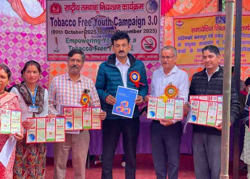 .डीएम के निर्देश पर लोहाघाट में तंबाकू मुक्त युवा अभियान का पालिकाध्यक्ष ने किया शुभारंभडीएम चंपावत मनीष कुमार के निर्देश पर आज 9 अक्टूबर से अगले 60 दिनों तक चलने वाले तम्बाकू मुक्त युवा अभियान 3.0 का जिलाधिकारी चम्पावत के दिशा निर्देश एवं मुख्य चिकित्साधिकारी चम्पावत के मार्गदर्शन में राष्ट्रीय तंबाकू नियंत्रण कार्यक्रम के अंतर्गत जनपद चंपावत में तंबाकू मुक्त युवा अभियान 3.0 का शुभारंभ खंड शिक्षा अधिकारी लोहाघाट की अध्यक्षता में बी आर सी लोहाघाट में संपन्न हुआ कार्यक्रम का उद्घाटन बतौर मुख्य अतिथि गोविंद लाल वर्मा अध्यक्ष नगर पालिका परिषद लोहाघाट द्वारा किया गया | इस अवसर पर ममता मिश्रा जिला सलाहकार एनसीडी चंपावत के द्वारा तंबाकू के दुष्प्रभावों के विषय में विस्तृत जानकारी एवं कोटपा अधिनियम 2003 का पालन करने हेतु विस्तृत जानकारी दी गई। साथ ही यह भी बताया गया कि तम्बाकू एक धीमा जहर है जो मनुष्य को धीरे धीरे नुक्सान पहुंचता है जिसके सेवन से व्यक्ति में मुह का कैंसर, फेफड़ों का कैंसर, हार्ट अटैक, स्वास की बीमारी, खांसी, टी बी जैसे गंभीर बीमारियाँ जन्म लेती हैं | डॉ विराज राठी, चिकित्सा अधीक्षक, उप जिला चिकित्सालय लोहाघाट, डॉ शशांक ईएनटी सर्जन उप जिला चिकित्सालय लोहाघाट, डॉ धनंजय पाठक हड्डीरोग विशेषज्ञ, जिला चिकित्सालय चम्पावत, राकेश पन्त, ब्लाक कार्यक्रम प्रबंधक लोहाघाट, एवं लोहाघाट क्षेत्र की आशा एवं एएनएम के द्वारा कार्यक्रम के संचालन में महत्वपूर्ण भूमिका निभाई गयी | हरीश पांडे, काउंसलर NTCP द्वारा तंबाकू छोड़ने हेतु लोगों को परामर्श दिया गया। साथ ही जिला दिव्यांगजन पुनर्वास केन्द्र की टीम द्वारा दिव्यांग शिविर का आयोजन भी किया गया जिसमें 08 दिव्यांग प्रमाण पत्र निर्गत किये गए | कार्यक्रम के सफल संचालन हेतु अपर मुख्य चिकित्सा अधिकारी राष्ट्रीय स्वास्थ्य मिशन डॉक्टर इंद्रजीत पांडे द्वारा कार्यक्रम का समापन करते हुए अभियान के सफल संचालन एवं क्रियान्वयन किये जाने के सम्बन्ध में आम जनमानस एवं सभी प्रतिभागियों से अपील की कि जनपद चम्पावत को तम्बाकू मुक्त बनाया जाना है जिसमें जनपद के सभी संभ्रांत नागरिकों एवं व्यक्तियों के सहयोग की अपेक्षा है जिसमें तम्बाकू का प्रयोग नहीं किया जाना है जो एक जानलेवा जहर है।