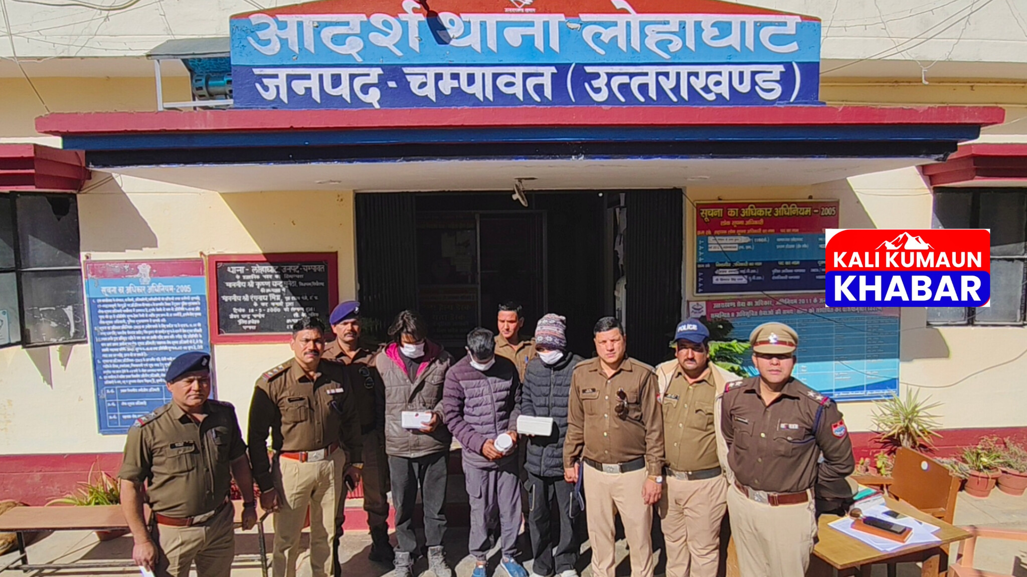 एसपी चंपावत अजय गणपति के निर्देश पर नशा तस्करों के खिलाफ पुलिस का अभियान लगातार जारी है। एसपी के निर्देश पर लोहाघाट पुलिस ने एसएचओ अशोक कुमार सिंह के नेतृत्व में 25 नवंबर की देर रात लगभग 10:00 बजे के आसपास लोहाघाट के शिवालय पुल के पास से तीन युवकों को लगभग 20 ग्राम स्मैक के साथ बरामद किया है तथा युवकों की ऑल्टो कार को भी सीज कर दिया गया है। एसएसओ लोहाघाट अशोक कुमार सिंह ने आज बुधवार को जानकारी देते हुए बताया मंगलवार रात लगभग 10 बजे पुलिस टीम को शिवालय पुल के पास एक ऑल्टो कार UK 03 C 1258 खड़ी नजर आई जिसकी भीतर की लाइट जली हुई थी। पुलिस टीम ने जब कार में देखा तो उसमें तीन युवक नशा करते हुए नजर आए। थानाध्यक्ष ने बताया जब युवकों की तलाशी ली गई तो तीनों युवकों के पास लगभग 20 ग्राम अवैध स्मैक बरामद हुई।