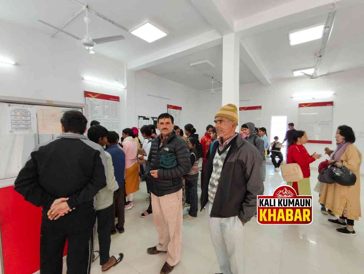 लोहाघाट।चंपावत जिले के लोहाघाट में एकमात्र आधार केंद्र पोस्ट ऑफिस में वर्तमान में संचालित हो रहा है ।अन्य आधार केंद्रों में कार्य न होने से पूरे क्षेत्र की भीड़ पोस्ट ऑफिस में संचालित आधार केंद्र में उमड़ रही है। जिस कारण दूर-दूर क्षेत्र से अपने आधार कार्ड बनवाने या सही करने के लिए आने वाली जनता काफी परेशान है। लोग आधार कार्ड बनाने तथा गलतियां सुधारने के लिए कई दिनों से पोस्ट ऑफिस आधार केंद्र के चक्कर लगा रहे हैं। एकमात्र आधार केंद्र में अत्यधिक भीड़ होने से सीमित लोगों का ही आधार कार्ड बन पा रहे हैं या गलतियां सुधारी जा रही है। मंगलवार को लोहाघाट के पोस्ट ऑफिस स्थित आधार केंद्र में सुबह से ही भारी भीड़ उमड़ पड़ी ।