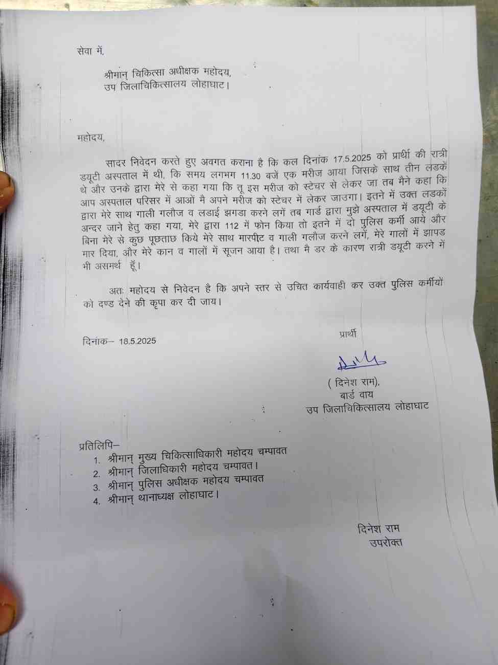 रिपोर्ट:लक्ष्मण बिष्ट 👹👹 : लोहाघाट:112 से मदद मांगना वार्डबॉय को पड़ा भारी मदद मांगने से नाराज 112 कर्मियों ने पीटा।स्वास्थ्य कर्मियों में आक्रोश ।