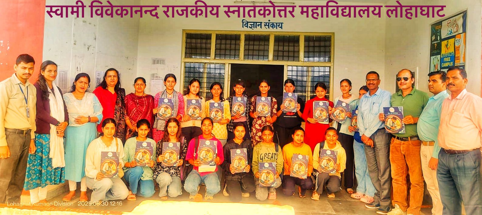शी फॉर स्टेम प्रोग्राम - विज्ञान के क्षेत्र में शोध हेतु छात्रों को प्रोत्साहित l स्वामी विवेकानन्द राजकीय स्नातकोत्तर महाविद्यालय लोहाघाट में बी.एससी. तृतीय सेमेस्टर एवं चतुर्थ सेमेस्टर के विद्यार्थियों के किए यू-कॉस्ट, विज्ञानशाला इंटरनेशनल एवं उच्च शिक्षा द्वारा विज्ञान के क्षेत्र में शोध छात्रों को प्रोत्साहित करने हेतु कार्यक्रम आयोजित किया गया l कार्यक्रम की अध्यक्षता प्रोफेसर (डॉ) संगीता गुप्ता, संयोजक डॉ. बी.पी. ओली एवं सदस्य डॉ. किशोर जोशी, डॉ. एस. पी. सिंह, डॉ. अनीता खर्कवाल, डॉ. नम्रता महर, डॉ. मनोज कुमार, डॉ. मीना कुमारी, डॉ. सीमा नेगी रहे l डॉ. संगीता गुप्ता द्वारा संबोधन में कहा गया कि - ‘शी फॉर स्टेम प्रोग्राम’ - विज्ञान के क्षेत्र में शोध हेतु छात्रों को प्रोत्साहित करना उच्च शिक्षा का उद्देश्य है और चम्पावत जिले में विज्ञान के क्षेत्र में नए-नए अवसर को तलाश कर शोध कार्य को आगे बढ़ाना है l कार्यक्रम के संयोजक डॉ. बी.पी. ओली द्वारा विषय पर प्रकाश डालते हुए ‘शी फॉर स्टेम प्रोग्राम’ की महत्व पर प्रकाश डाला और सभी का स्वागत एवं धन्यवाद व्यक्त किया l कार्यक्रम में श्रीमती मोहनी, नरेंद्र कुँवर, मनोज जोशी, राहुल सामंत रहे तथा मेंटर के रूप में सौरभ जोशी एवं प्रदीप बोहरा द्वारा 15 छात्रों का ‘शी फॉर स्टेम प्रोग्राम’ पंजीकरण कराया उपस्थित विद्यार्थियों में सिमरन, राखी बिष्ट, भावना करायत, अनामिका पांडेय, मोनिका महर, प्राची अधिकारी, ममता धौनी, दिया विश्वकर्मा, प्रिया महार, दीपा आर्या आदि l