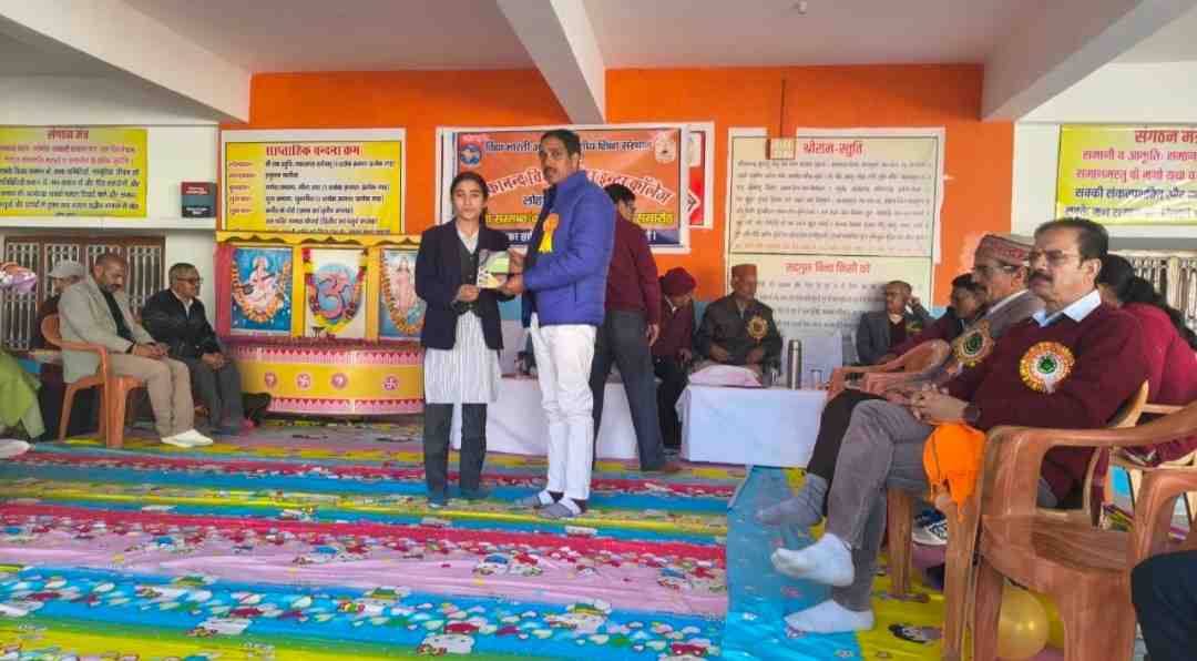 विवेकानंद विद्या मंदिर इंटर कॉलेज लोहाघाट में बोर्ड परीक्षा हाईस्कूल और इंटर में उत्कृष्ट प्रदर्शन करने वाले 46 भैया बहनों को राज्य सरकार द्वारा प्रदान किए जाने वाले कमला नेहरू पुरस्कार से सम्मानित किया गया ।प्रथम तीन स्थान प्राप्त करने वाले भैया बहनों को विद्यालय की ओर से ₹1100 व स्मृति चिन्ह तथा प्रमाण पत्र दिए गए ।प्रांत स्तर पर खेलकूद ,बौद्धिक प्रतियोगिताओं तथा नशा मुक्ति संदेश अभियान में रंगोली ,निबंध तथा स्लोगन प्रतियोगिता में प्रथम द्वितीय व तृतीय स्थान प्राप्त करने वाले भैया बहनों को सामाजिक कार्यकर्ता राजू गढ़कोटी द्वारा पुरस्कार किया गया ।समारोह के मुख्य अतिथि जिला पंचायत अध्यक्ष आनंद अधिकारी ने अपने संबोधन में कहा कि में आज जिस पद पर आसीन हूं यह सब इसी विद्यालय की देन है ।उन्होंने सभी बच्चों को शुभकामनाएं देते हुए कहा कि हमें अपना जीवन संस्कारित करने के लिए अपने माता-पिता व गुरुजनों की आज्ञा का पालन करना आवश्यक है ।कार्यक्रम की अध्यक्षता कर रहे खंडे शिक्षा अधिकारी घनश्याम भट्ट द्वारा सभी छात्र-छात्राओं को कहा अनुशासन हमारे जीवन के लिए बहुत आवश्यक है उनके द्वारा सभी बच्चों को अपने कीमती समय का सदुपयोग करने की सलाह दी उन्होंने कहा आगे जीवन में बहुत सी चुनौतियां हैं।