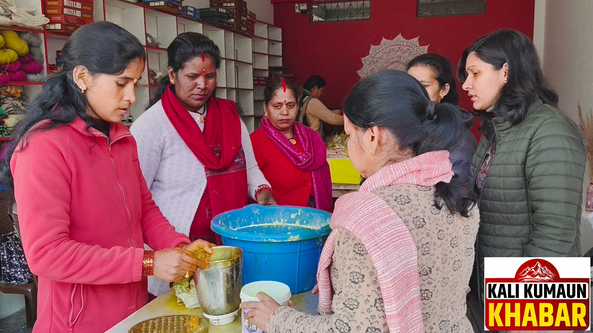 रिपोर्ट:लक्ष्मण बिष्ट : लोहाघाट:वैली क्रिएशन की महिलाएं फूलों व सब्जियों से तैयार कर रही है होली के प्राकृतिक रंग।
