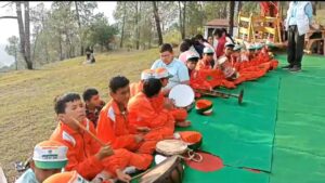 बाबा विश्वनाथ जगदीशीला डोली का लड़ीधुरा मंदिर पहुंचने पर ढोल नगाड़ों से किया गया स्वागत