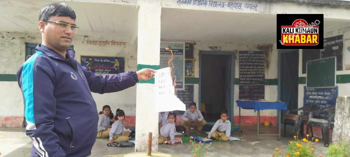रिपोर्ट:लक्ष्मण बिष्ट : लोहाघाट:शिक्षक कर्मचारियों ने जलाई एफआईआर की प्रतियाँ