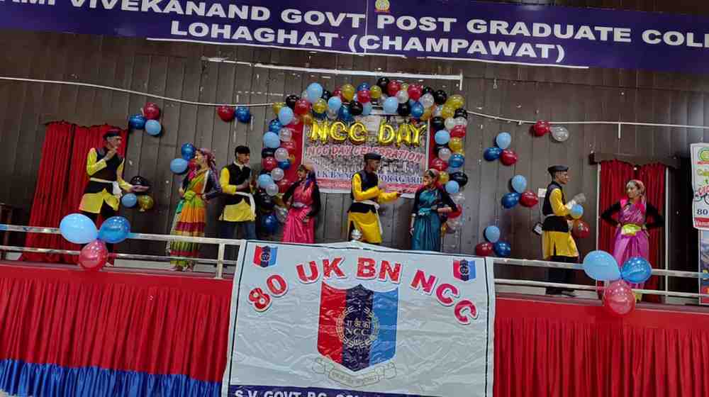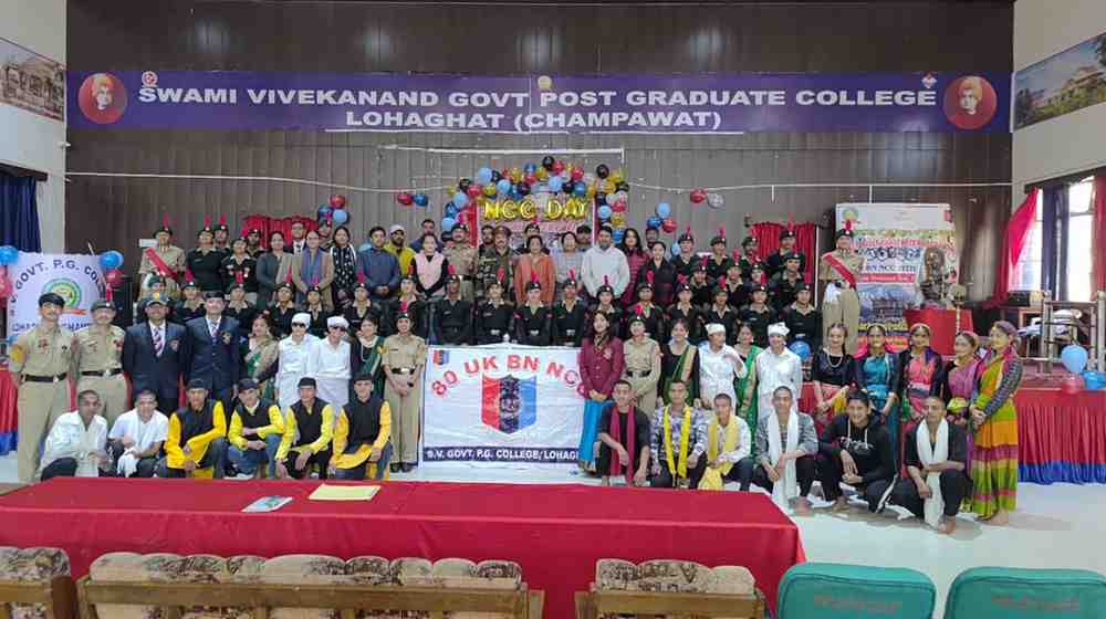 स्वामी विवेकानंद राजकीय स्नातकोत्तर महाविद्यालय लोहाघाट चम्पावत में आज एन0 सी0 सी दिवस समारोह हर्षोल्लास के साथ मनाया गया। कार्यक्रम का शुभारंभ मां सरस्वती को पुष्पांजलि व दीप प्रज्वलित कर किया गया। प्राचार्य प्रो संगीता गुप्ता ने सभी कैडेट्स को बधाई देते हुए जीवन के श्रेष्ठ लक्ष्य को हासिल करने हेतु प्रेरित किया। लेफ्टिनेंट डा कमलेश शक्टा ने कहा कि आज एन सी सी के माध्यम से युवा वर्ग को विभिन्न लाभ मिल रहे हैं, व देश सेवा करने के अनेक अवसर प्राप्त हो रहे हैं। कुछ हजार स्वयं सेवकों से शुरू हुआ ये कारवां आज 20 लाख स्वयंसेवकों तक जा पहुंचा है। छात्रों में एकता और अनुशासन प्रदान करने में एन सी सी अग्रणी भूमिका का निर्वहन कर रही है। कार्यक्रम के दौरान कैडेट्स ने रंगारंग कार्यक्रमों को प्रस्तुत किया और भाषण दिए। इस अवसर पर थल सेना कैंप में विशिष्ट उपलब्धि हासिल करने पर कॉरपोरल प्रियांशु सिंह और कैडेट नुमान राजा को पुरस्कृत किया गया।