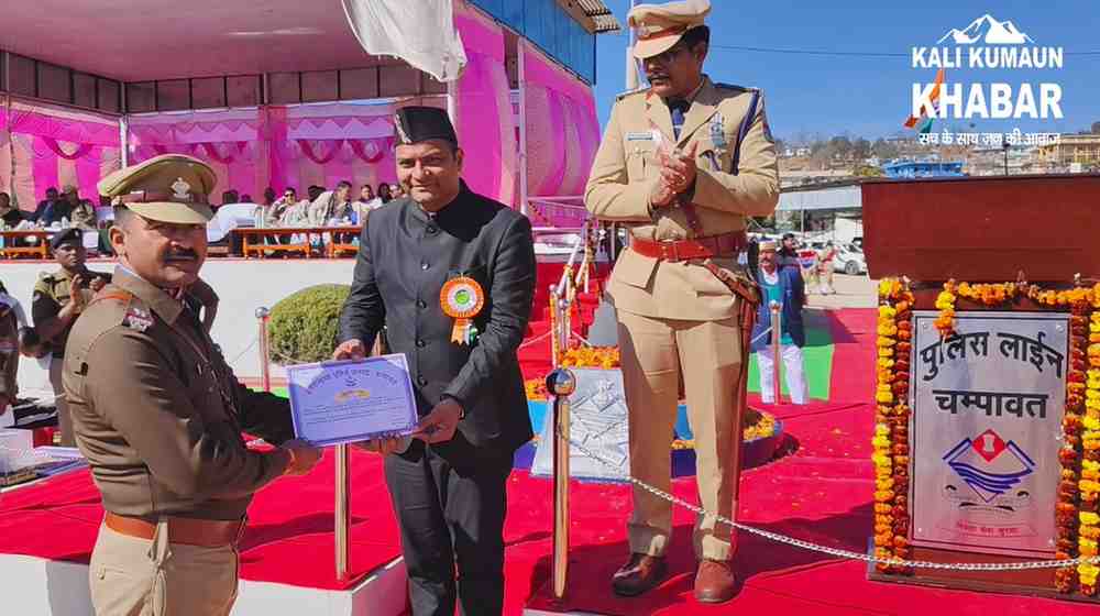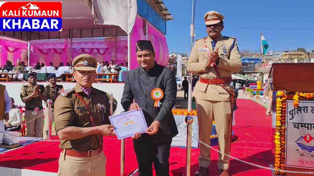 कार्यक्रम का शानदार संचालन श्रीमती सोनिया आर्य व एसआई कमलेश भट्ट ने किया इस दौरान ब्लॉक प्रमुख चम्पावत श्रीमती अंचला बोहरा, भाजपा जिलाध्यक्ष गोविंद सिंह सामंत, विधायक प्रतिनिधि प्रकाश तिवारी, भाजपा जिला उपाध्यक्ष मुकेश कलखुडिया, प्रदेश कार्यकारिणी सदस्य सतीश पांडेय, अपर जिलाधिकारी कृष्णनाथ गोस्वामी,सहित अन्य पुलिस अधिकारी व पुलिस जवान, भूतपूर्व सैनिक तथा बड़ी संख्या में लोग उपस्थित रहे।