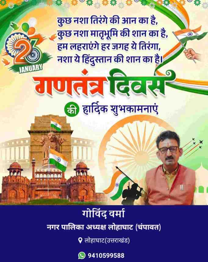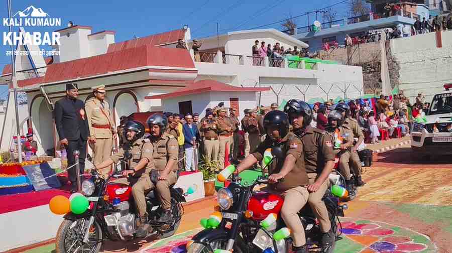 राष्ट्रीय पर्व गणतंत्र दिवस को आज जनपद चंपावत में राष्ट्रीय एकता, अखंडता, धर्मनिरपेक्षता एवं सांप्रदायिक सौहार्द की भावना के साथ हर्षोल्लासपूर्वक मनाया गया।इस अवसर पर कलेक्ट्रेट परिसर एवं पुलिस लाइन में जिलाधिकारी मनीष कुमार द्वारा ध्वजारोहण किया गया तथा उपस्थित अधिकारियों, कर्मचारियों एवं नागरिकों को राष्ट्रीय एकता, अखंडता एवं देश के संविधान के प्रति समर्पित रहने की शपथ दिलाई गई।चंपावत पुलिस लाइन में एसपी अजय गणपति के निर्देश पर पुलिस बैंड के साथ शानदार रेतिक परेड आयोजित की गई। जिलाधिकारी चंपावत को एसपी अजय गणपति के द्वारा परेड की सलामी ली गई। साथ ही स्कूली बच्चों द्वारा देशभक्ति से ओतप्रोत सांस्कृतिक कार्यक्रम प्रस्तुत किए गए।