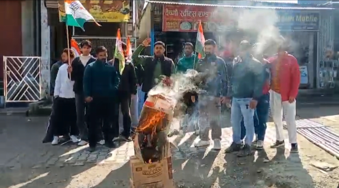 एस्मा लगाए जाने के विरोध पर कांग्रेस ने भाजपा सरकार का फूका पुतला।