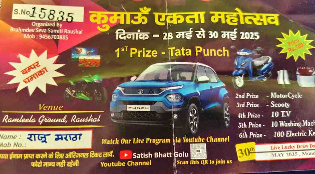 रिपोर्ट:लक्ष्मण बिष्ट : लोहाघाट के राजू मराठा 300 रुपए में बने टाटा पंच के मालिक कुमाऊं एकता महोत्सव में चमकी किस्मत।