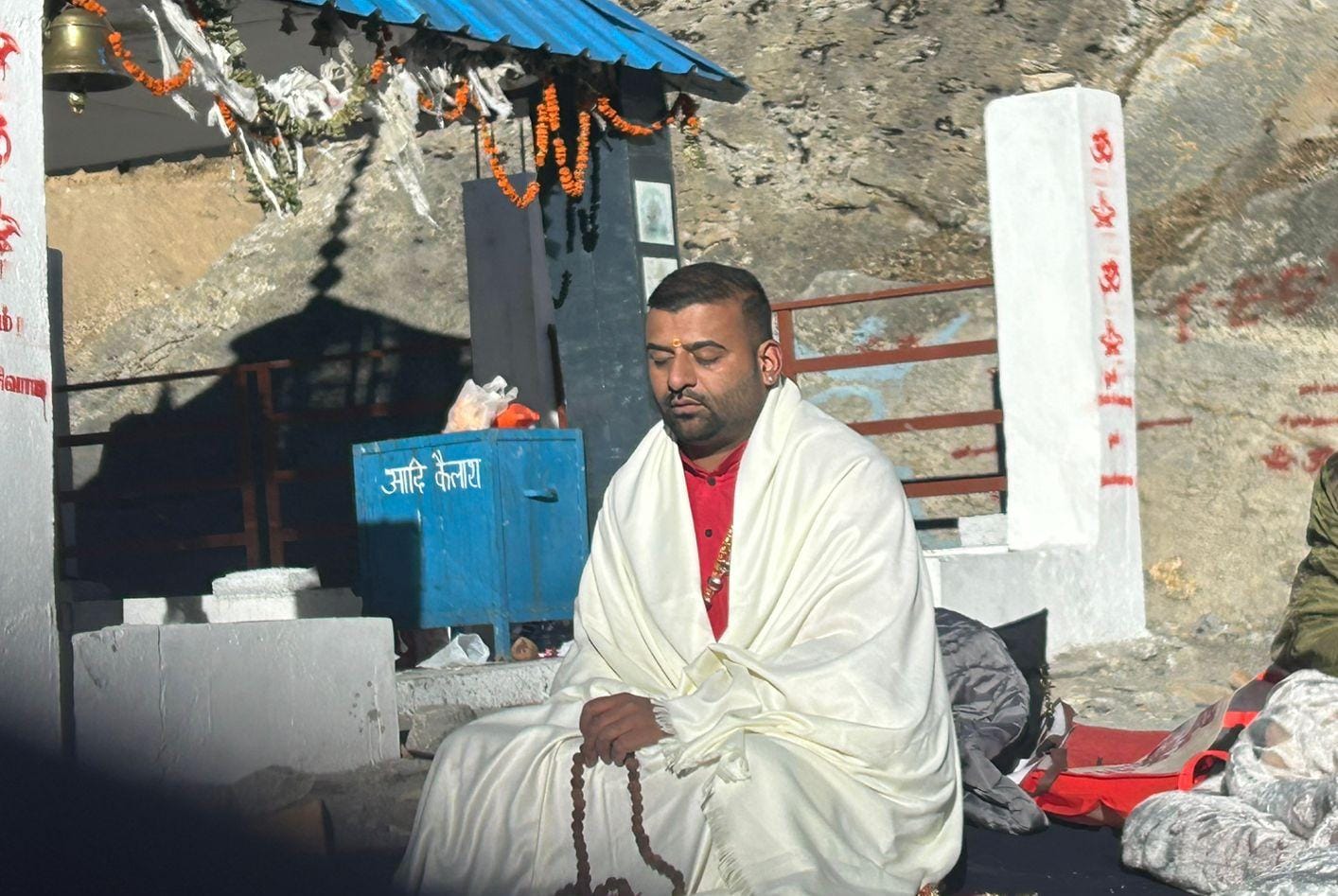 महामंडलेश्वर पंकज महाराज ने किए आदि कैलाश के दर्शन — बर्फीली हवाओं में किया ध्यान।