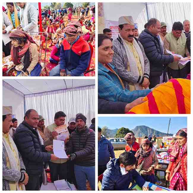 वृद्धावस्था, विधवा एवं दिव्यांग पेंशन सेवाएँ उपलब्ध कराई गईं। आयुष विभाग द्वारा आयुर्वेद एवं होम्योपैथिक परामर्श के साथ औषधियों का वितरण किया गया। कृषि एवं उद्यान विभाग द्वारा बीज एवं उर्वरक उपलब्ध कराए गए, जबकि स्वास्थ्य विभाग द्वारा नेत्र परीक्षण, सामान्य स्वास्थ्य जाँच, रक्त जाँच एवं चिकित्सकीय परामर्श प्रदान किया गया। खाद्य पूर्ति विभाग ने राशन कार्ड संशोधन एवं केवाईसी की सुविधा दी।इसके अतिरिक्त एसबीआई आरसेटी द्वारा स्वरोजगार एवं कौशल विकास प्रशिक्षण, सहकारिता विभाग द्वारा ऋण व सहकारी योजनाओं की जानकारी तथा पशुपालन एवं डेयरी विकास विभाग द्वारा पशु स्वास्थ्य परीक्षण सेवाएँ उपलब्ध कराई गईं।