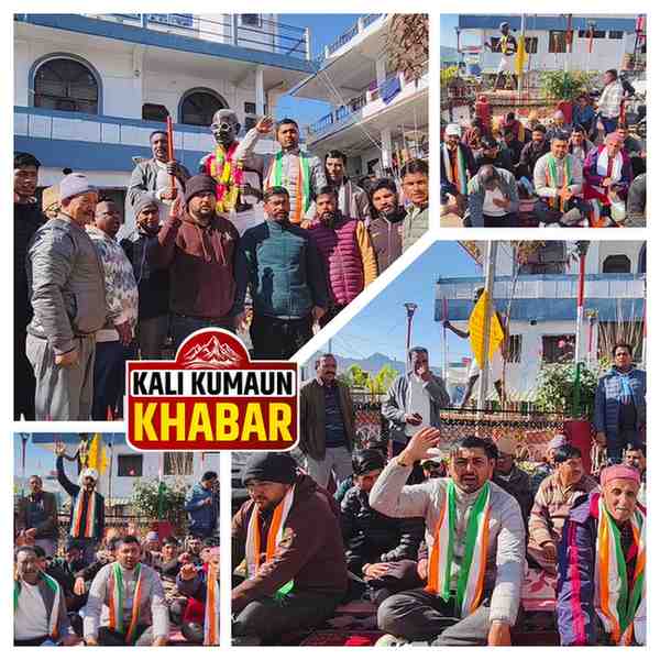 रिपोर्ट :लक्ष्मण बिष्ट : लोहाघाट:मनरेगा योजना का नाम व नियम बदलने के विरोध मे कांग्रेस ने महात्मा गांधी की मूर्ति के आगे दिया धरना।